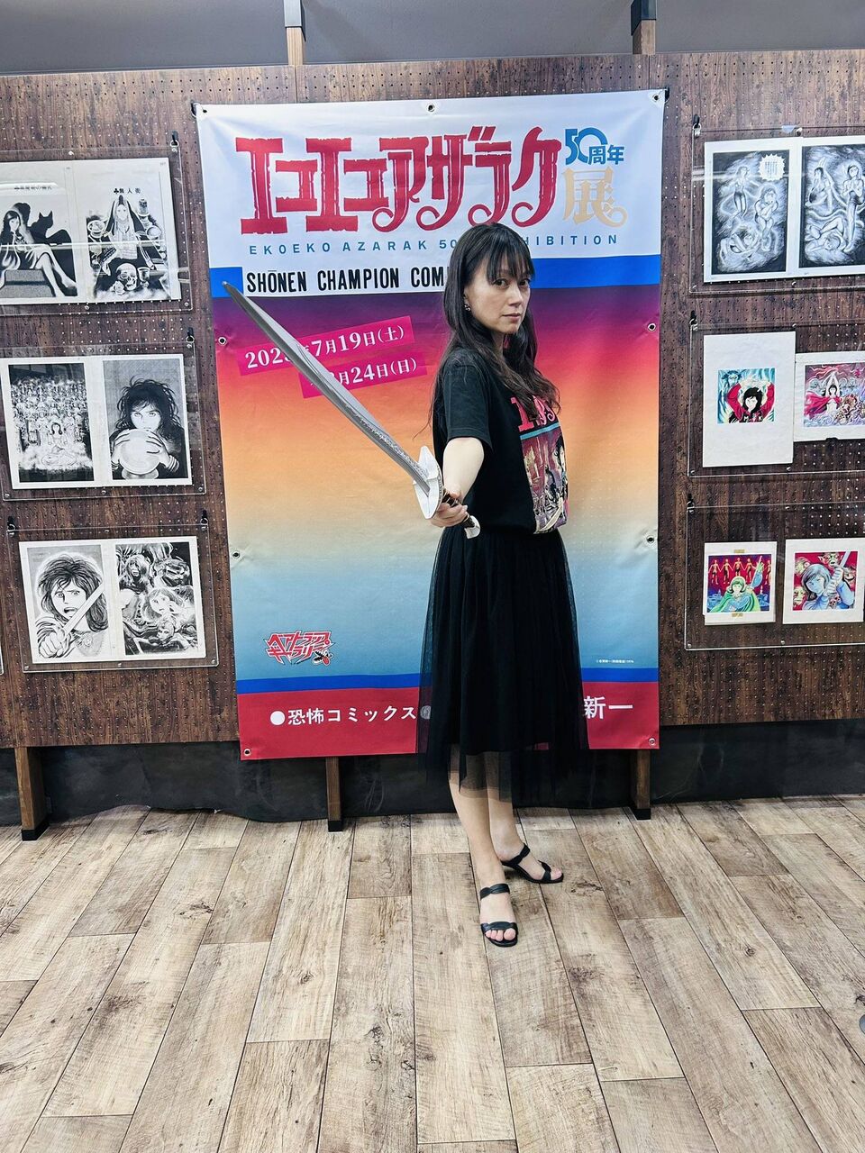 1975年から連載開始し?怪奇漫画の金字塔?として今なお根強い人気を誇る漫画「エコエコアザラク」(秋田書店)の連載開始50周年を記念して、大阪「ベアトラップギャラリー」で8月24日まで開催されている「エコエコアザラク50周年展」に来展したのは、97年放送のテレビドラマ版で主人公?黒井ミサ?を演じた女優の佐伯日菜子。