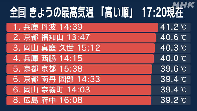 兵庫 丹波 41.2度 国内観測史上最高を更新 | NHK | 気象: