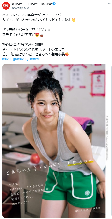 恥じらいながら踊るバニーガール動画が大バズりした、“日本一脱ぎっぷりのいいTikToker”ときちゃん(29)が、2025年8月29日、2nd写真集「ときちゃんネイキッド!」を発売します。
