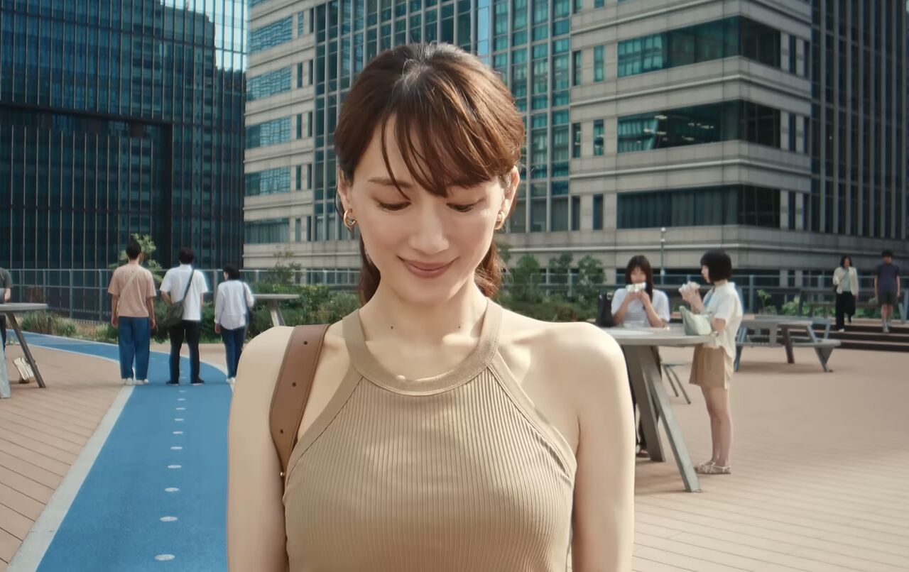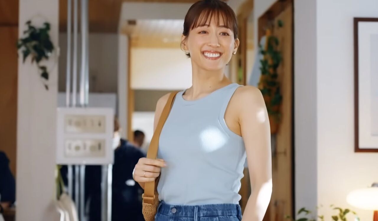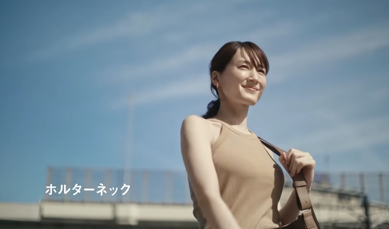 「ユニクロの人気商品のひとつに、ブラとキャミソールが一体化した商品『ブラトップ』があります。夏が近づいてくると、ユニクロ側もCMを強化するのですが、近年は出演タレントがブラトップ1枚で出かける内容が多くなっていました。綾瀬さんが出演中のCMでも、冒頭から上半身裸で背中を向けた姿が映し出され、ブラトップにシャツ1枚という薄着スタイルだったり、肩まわりが開いたホルターネックのブラトップ1枚で外出したりと、露出多めの内容になっています」(芸能記者)