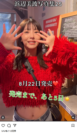 発売に先駆け、写真集の公式Instagramでは、発売まであと5日とカウントダウンする浜辺美波の動画が投稿され、激レアなへそ出しショットにファンから興奮の声が殺到していました。