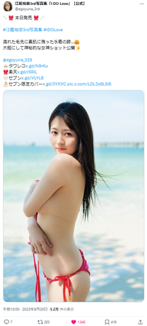 元SKE48で現在は自ら作詞もするソロアイドルとして活動中の江籠裕奈(えご ゆうな=25歳)が、2025年8月20日、3rd写真集「I DO Love」を発売しました。