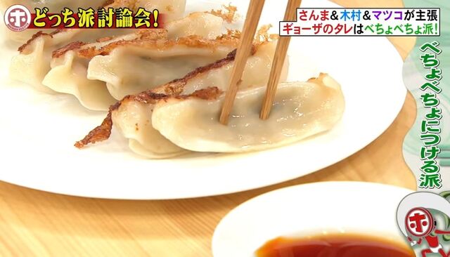 2 タレに漬けて穴を下に箸で餃子を押して空気を出す。