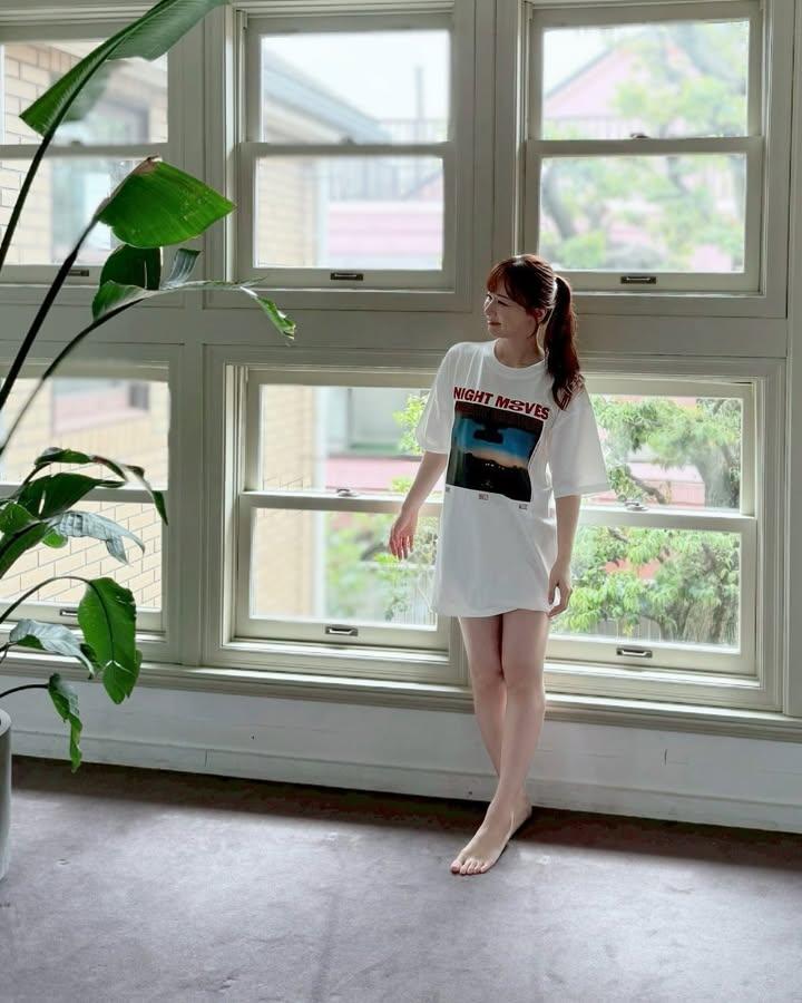 Tシャツからスラリと足が伸びているように見えるが、内側にはショート丈のパンツを履いているようだ。