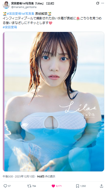 日向坂46の元メンバーで、現在は作家、タレントとして活躍する宮田愛萌(まなも=27)が、2026年1月28日、水着やランジェリーに挑戦した1st写真集『Lilas』を幻冬舎から発売します。