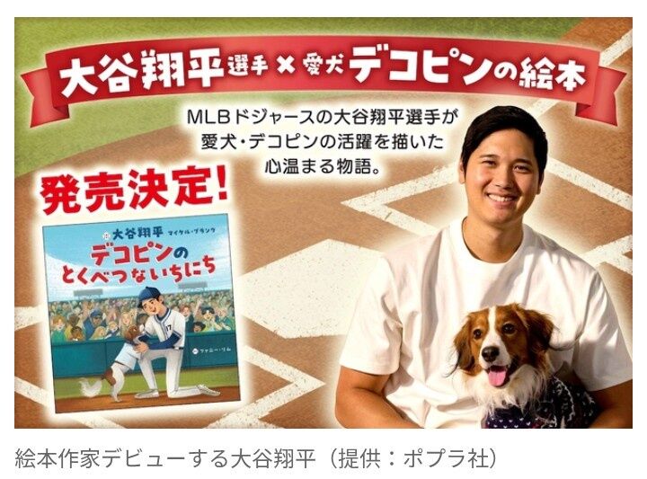 株式会社ポプラ社は19日、MLBドジャースの大谷翔平選手の愛犬・デコピンの活躍を描いた絵本『デコピンのとくべつないちにち』を2026年2月に全国の主要書店およびオンライン書店にて発売することを決定したと発表した。