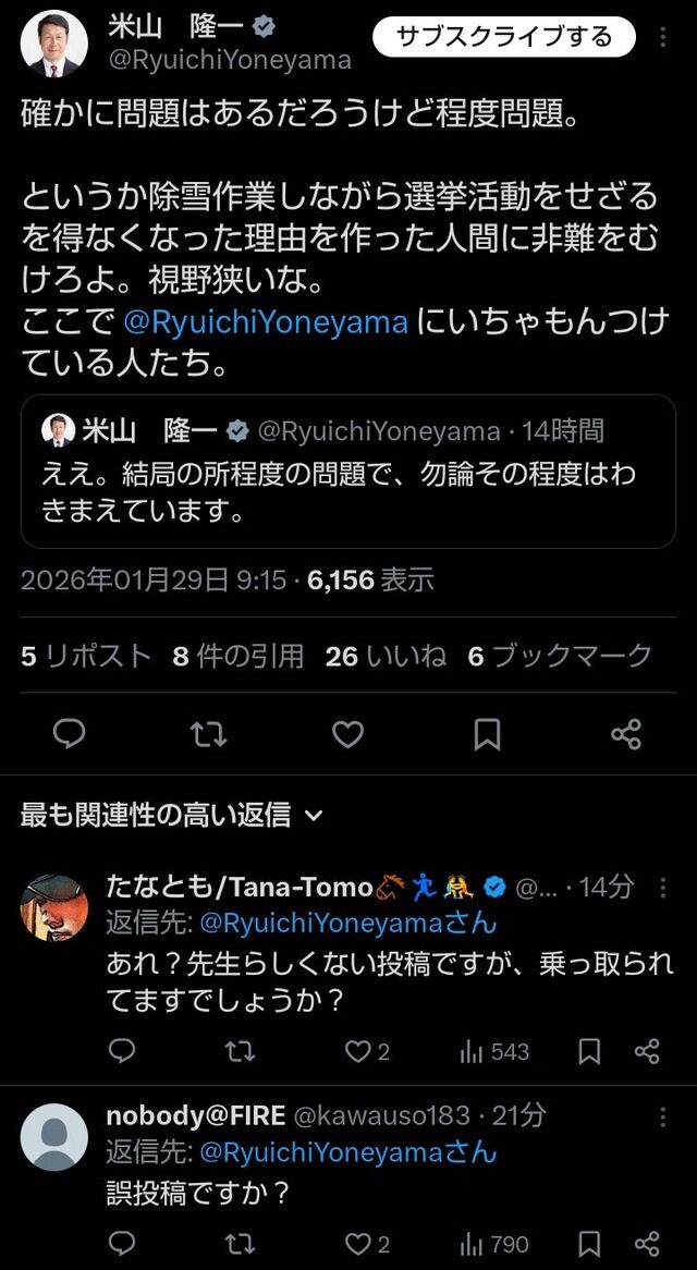 スポンサーリンク 【悲報】 米山隆一さん、自演擁護疑惑が浮上 → ツイ消し逃亡か…「ちょもらんま」裏垢説まで出てしまう 芸能人の気になる噂 2026.01.29 スポンサーリンク 【悲報】 米山隆一さん、自演擁護疑惑が浮上 → ツイ消し逃亡か…「ちょもらんま」裏垢説まで出てしまう – にゅーぷる 続きを読む Source: 芸能人の気になる噂