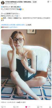 乃木坂46のキャプテン・梅澤美波(26)が、2026年2月3日、2nd写真集『透明な覚悟』を光文社から発売します。