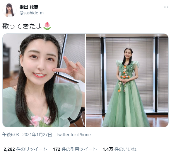 大人気テレビアニメ「ラブライブ!虹ヶ咲学園スクールアイドル同好会」のエマ・ヴェルデ役などで知られる声優の指出毬亜(さしで・まりあ=22歳)が、2021年1月27日、自身のTwitterを更新。珍しくおでこを出した2枚の自撮り写真を投稿すると、1.4万件超の「いいね!」がつき、その容姿に2chでも絶賛の声が寄せられていました。