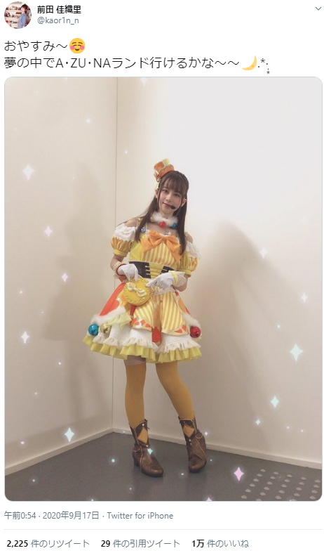 アミューズ所属の新人声優・前田佳織里(24歳=身長146cm)が、2020年9月17日、自身のTwitterを更新。先日開催されたオンラインライブ「ラブライブ!虹ヶ咲学園スクールアイドル同好会 2nd Live! Back to the TOKIMEKI」のオフショット写真を投稿したところ、1万件以上の「いいね」がつき、内股のポーズが可愛いと話題になっていました。