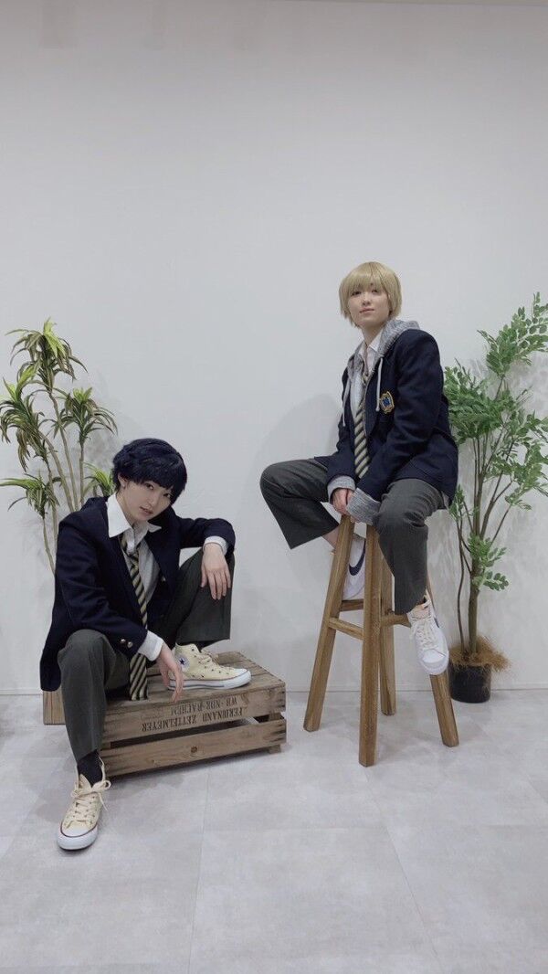 写真にはブレザーの制服を着こなし、ウィッグをかぶった工藤と宮本の姿が。もともとが美形な二人だけに、ジャニーズ級の“イケメン”な仕上がりになっている。