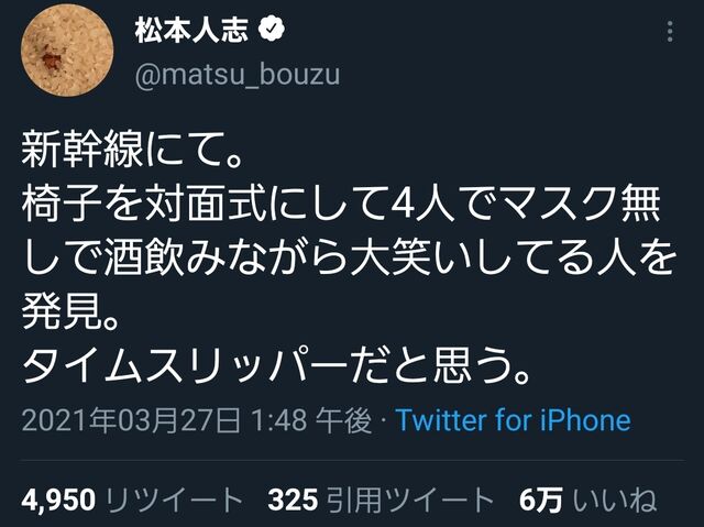 【朗報】松本人志さん、完全なる老害へwwww 2021/4/1 芸能人の気になる噂 1: 以下、5ちゃんねるからVIPがお送りします 2021/03/27(土) 16:18:40.405 ID:hMUlVLCod 草だ https://livedoor.blogimg.jp/uwasainfo/imgs/1/f/1fc7ca31.jpg 続きを読む Source: 芸能人の気になる噂