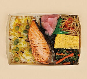 まずは30日に関東地方で発売する「炙り焼鮭といろいろおかず弁当(スーパー大麦入り)」(税込み360円)を紙製容器にする。
