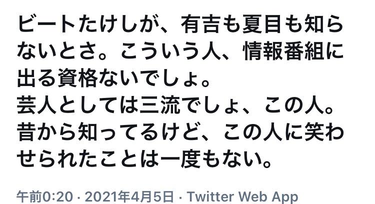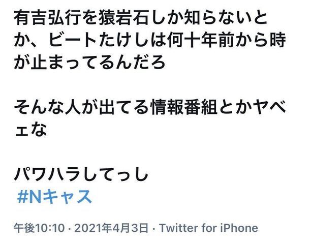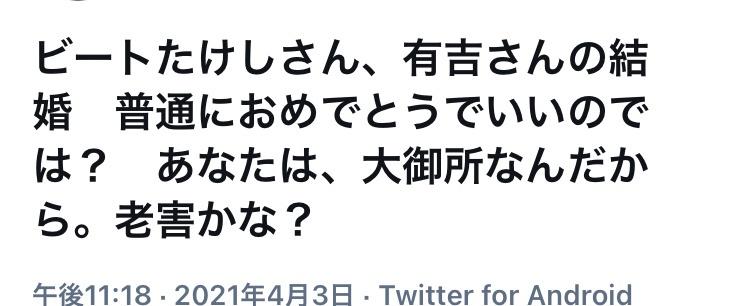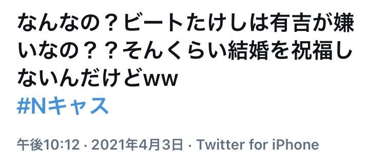 ビートたけしが、3日放送の『新・情報7daysニュースキャスター』(TBS系)の中で、有吉弘行と夏目三久の結婚に毒を吐きまくった。