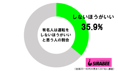 しらべぇ編集部が全国の20代~60代の男女1,537名に聞いた調査では、35.9%が「有名人は運転しないほうがいい」と回答している。