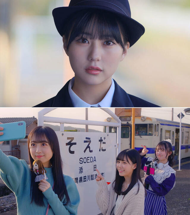 さらにメンバーが扮した車掌や乗務員、作業員などの服装は、全て本物の制服を着用。熊本事務センターのシーンでは JR 九州の職員も撮影に参加協力しており、リアリティのあるシチュエーションが数多く収められている。 もちろん、彼女たちの最大の魅力のひとつでもあるダンスシーンも収録。サビの最後にシャッターを切る仕草が印象的なダンスは、福岡県の田川伊田駅からほど近い石炭記念公園で撮影され、両選抜が違った振り付けを披露している。 そして今回 MV の中で車掌役の田中美久が偶然見つけた、運上弘菜、渡部愛加里、上島楓が紛する 3 人のトレたび記録のインスタも、実際に公開されている。今後劇中の 3 人がどんな旅の思い出を投稿していくかも楽しみのひとつ だ。
