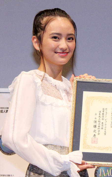 タレントの岡田結実が先月15日、都内で行われたセルフホワイトニングサロン「デンタルラバー2021 新商品発表会」に出席した。