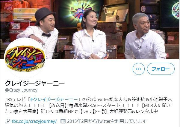 お笑いコンビ・ダウンタウンの松本人志、バナナマンの設楽統、女優・小池栄子がMCを務める同番組は、独自の目線や強いこだわりを持って世界や日本をめぐる人々(クレイジージャーニー)が、「その人だから話せる」「その人しか知らない」という常人離れした体験談を披露。
