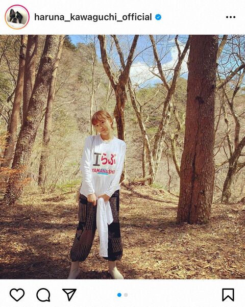 川口は「デジタルデトックスをしてなにか少しだけ肩の力が抜けたマメシバ真柴でした」と4日に放送された自身が主演を務めるTBSドラマ「着飾る恋には理由があって」を振り返り、「IらぶYAMANASHI」と書かれたTシャツ姿を投稿。また「秘湯最高でした」とつづり、温泉に入浴している後ろ姿の写真を披露した。