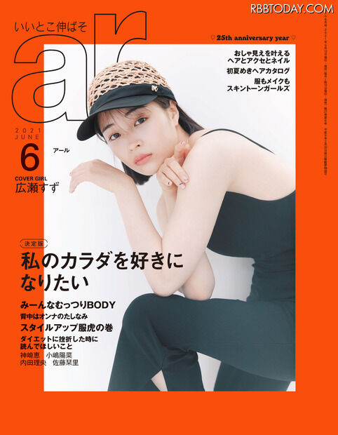 6月号の同誌は、1冊まるごと「自分のカラダを好きになる」がテーマ。広瀬は表紙で美しい二の腕を披露。同誌登場にあたり、「『ボディ特集なのに、そんなにストイックでない自分が表紙で大丈夫ですか?』と編集さんに聞いちゃいました(笑)」と謙虚。「食べ物は好きなものしか食べない派」とマイペースだそうで、「スーパースタイルがいい人に会うと一瞬とっても羨ましくなるけれど、自分の心の中で『やめときなさい~』とすぐに思えるタイプ」という冷静さもインタビューで明かしている。また、理想のボディについては、「綾瀬はるかさんの身体が大好きです。首から肩~デコルテのラインが国宝級に美しいので、タンクトップが最高に似合いますよね」と、女優・綾瀬はるかを絶賛した。