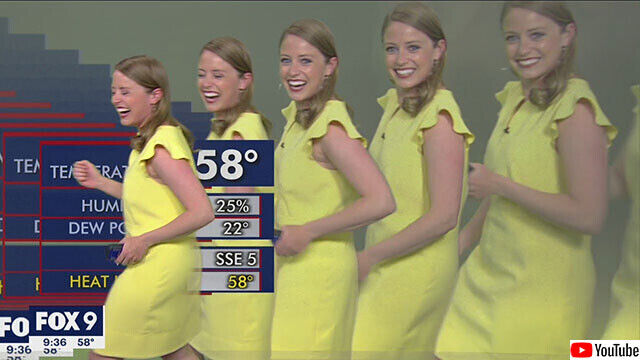 アメリカ、ミネソタ州ミネアポリスのテレビ局「Fox9」で天気予報を生放送で伝えていた気象学者のジェニファー・マクダーメッドさん。