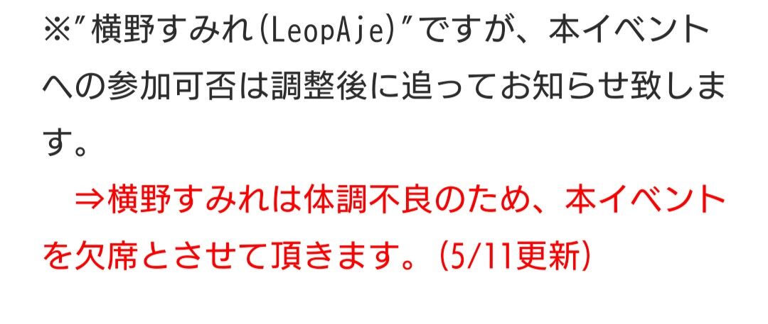 ※”横野すみれ(LeopAje)”ですが、本イベントへの参加可否は調整後に追ってお知らせ致します。