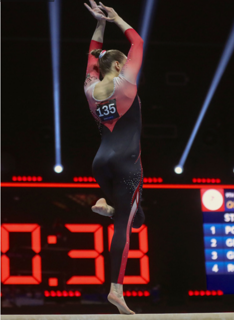 ドイツの東京オリンピック(五輪)代表候補のザラ・フォス(21)は他の2選手とともに、主流のレオタードではなく、ユニタード姿で出場した。黒色を下地とし、首から足首までを覆い、肌の露出はほとんどない。