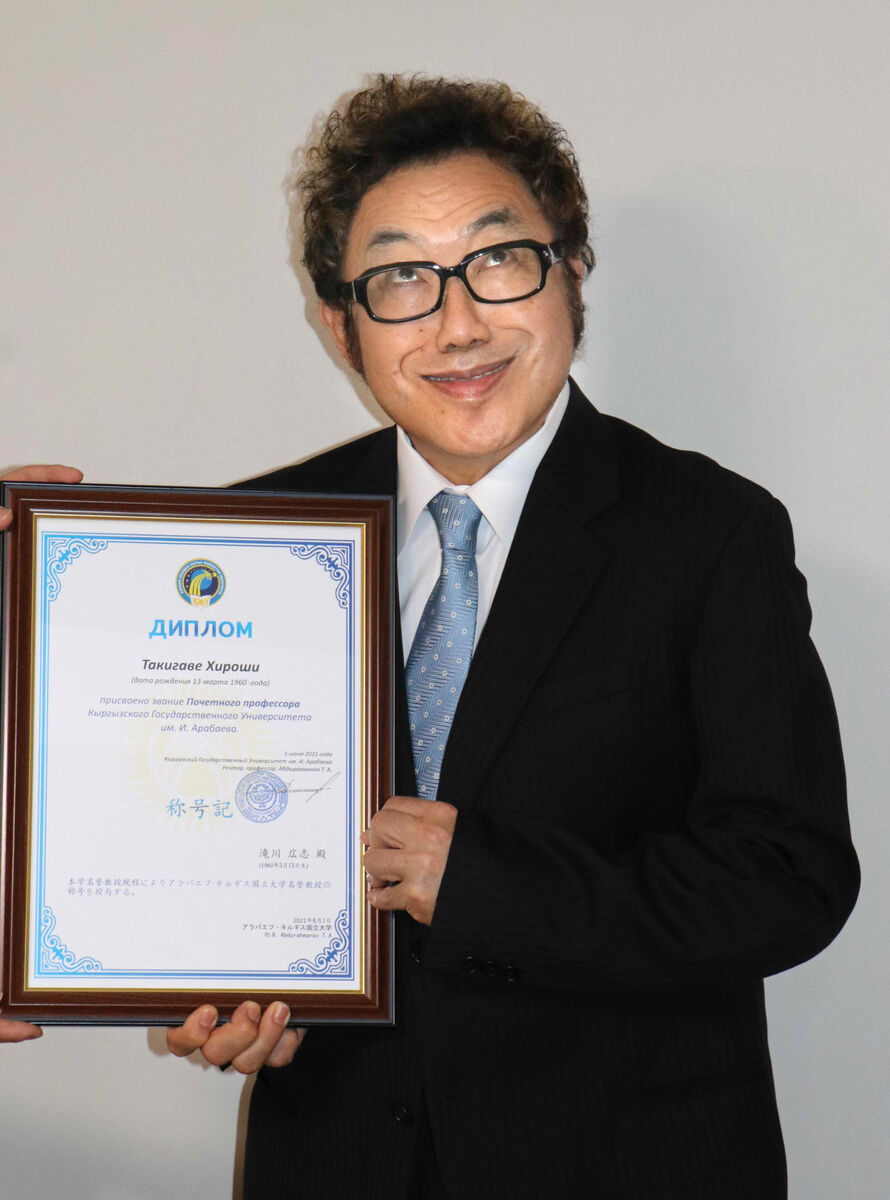 タレントのコロッケ(61)が28日、都内の在日本キルギス共和国大使館で、両国の文化交流の功績をたたえた感謝状授与式に出席し、アラバエフ・キルギス国立大の名誉教授に任命された。