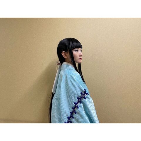 また「写真は今回演じます巫女の“おこま”です」と、前髪ぱっつんヘアで水色の巫女服を着た姿を投稿。「また新しい自分に千重子さんが導いて下さいました!!明日からも頑張ります!よろしくお願いします!」と記した。