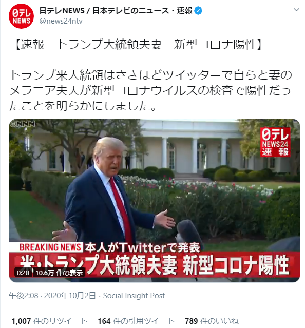 トランプコロナ感染の総合情報、2chの反応をまとめました。