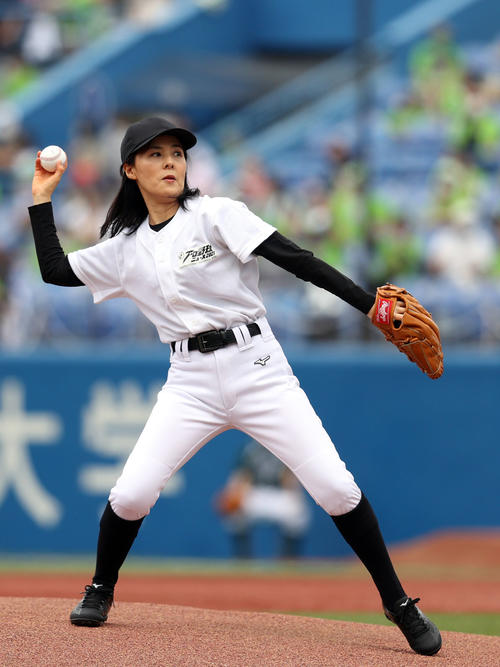 井森美幸「悔しい」ワンバン始球式 上下白ユニに黒の帽子で登板 - プロ野球 : 日刊スポーツ