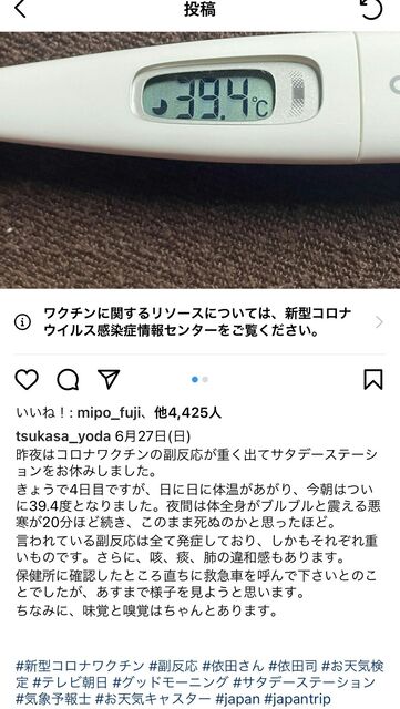 人気気象予報士さん、ワクチンの副反応がガチでヤバそう 2021/6/30 芸能人の気になる噂 1: 風吹けば名無し 2021/06/29(火) 07:39:29.74 ID:80ovzW680 太田さんが代理出演 https://livedoor.blogimg.jp/uwasainfo/imgs/8/1/8135429b.jpg 続きを読む Source: 芸能人の気になる噂