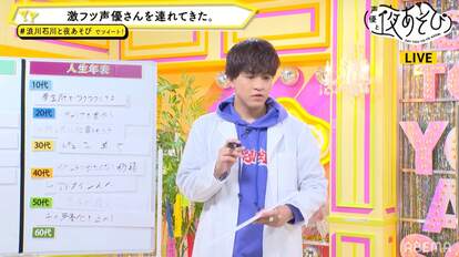 「びっくりするくらいの発言したじゃん」と驚く浪川へ、「演劇部で、中学のとき“石川声いいじゃん!”って言われたのをきっかけに声優目指しましたもん。アニメ好きだしって」と声優になったきっかけを語る。人生年表を作る際には、「10代でデビュー成功!初仕事は主演…あ、これ俺のだ」「自分のこと書くんじゃないですもんね」とおちゃらける石川に、浪川が「だいぶ自ら汚れに行くようになったな」と爆笑する場面も。