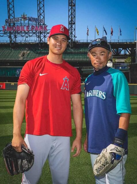 大谷がイチロー氏と再会 グラウンドで3分間談笑&記念撮影も