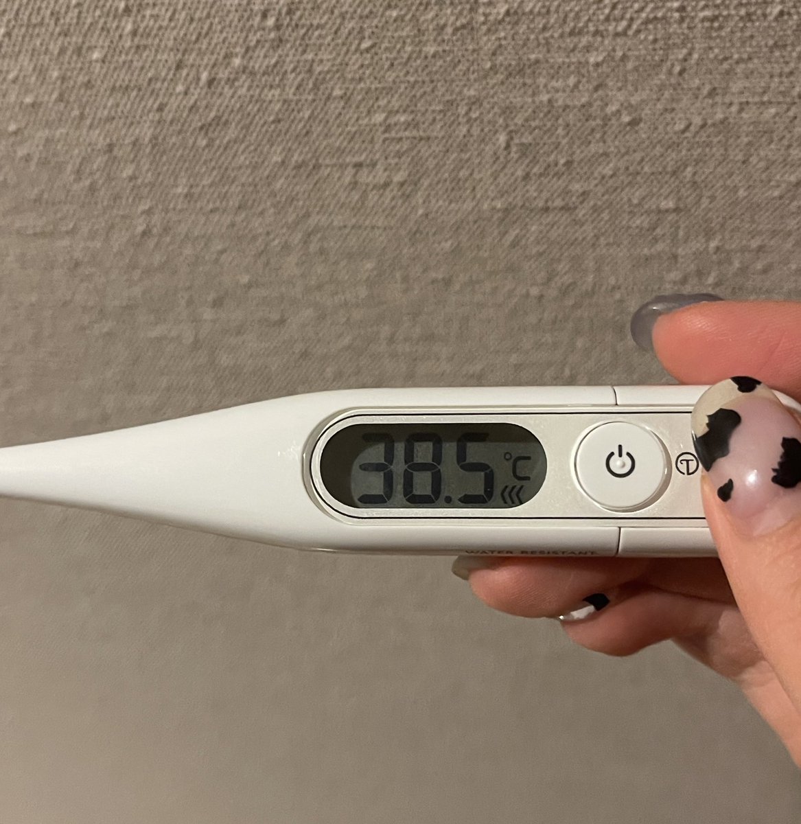 ワクチン接種から10時間経過、暑くて起き熱を測ると38.5℃!!寝る前の強烈な悪寒から一転、頭が痛くなる熱。