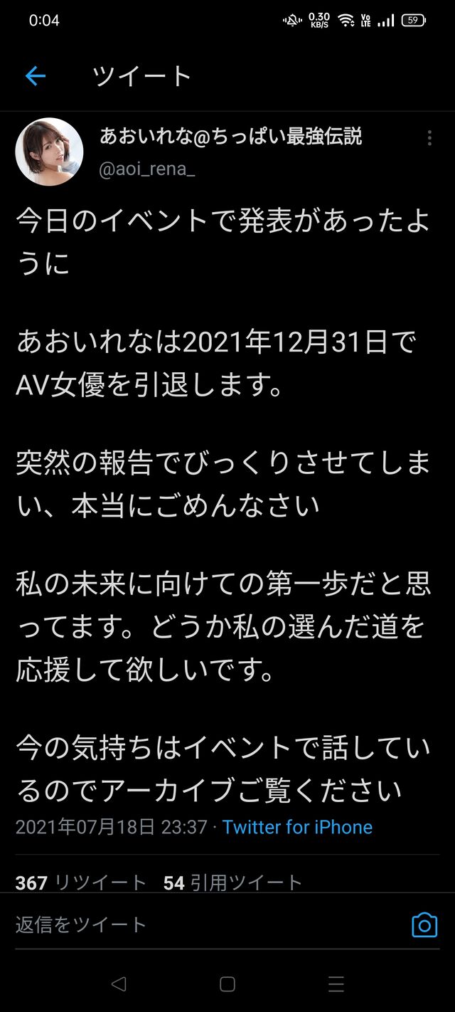 あおいれなは2021年12月31日でA●女優を引退します。