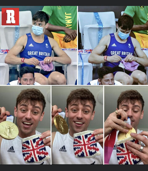 彼は競争する番である間にスタンドで編み物を捧げた英国のダイビングダイバーのトムデイリーです