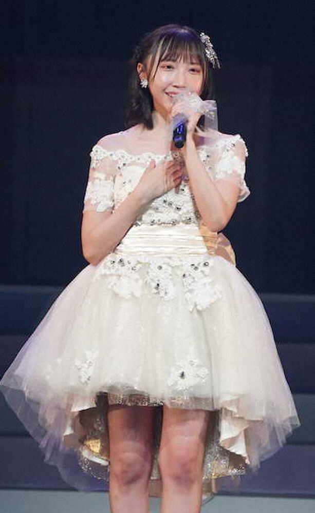 アンコールでは、オフショルダーの純白ミニドレス姿を披露し、アイドルらしさの中に、大人っぽさものぞかせた。笑顔がトレードマークの薮下。最後のあいさつでは、「わがままな所もある私に優しく肯定する言葉をくれた皆さんとの心のやりとりが、幸せな時間でした」と、ファンへの思いとともに涙があふれた。