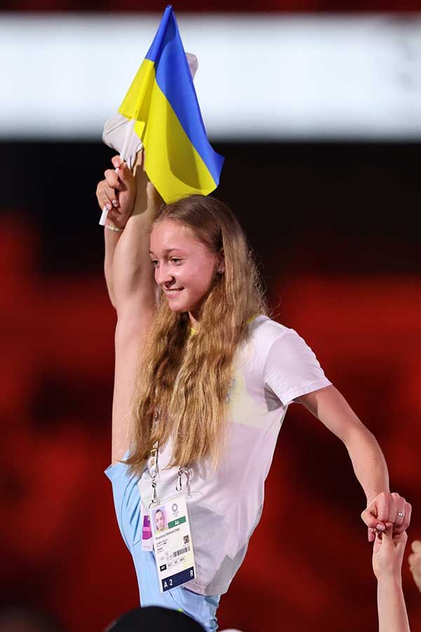 東京五輪は8日、閉会式が国立競技場で行われ、各国の選手団が参加した。フィールド上で思い思いに時間を過ごす中でウクライナの新体操選手は、選手たちの群れの中で開脚ポーズを披露。海外メディアが速報し、日本のネット上でも話題になった。閉会式の最中にあっと驚くシーンが映った。各国の選手入場。全選手が入り終えるまで待つ最中、選手団の群れで体が浮き、開脚ポーズを取る女性が。新体操のウクライナ代表フリスティナ・ポフラニチナだった。ほかの選手にリフトしてもらって右脚を上げ、手には国旗を持って笑顔。新体操選手らしいポーズで周囲の視線を集めていた。