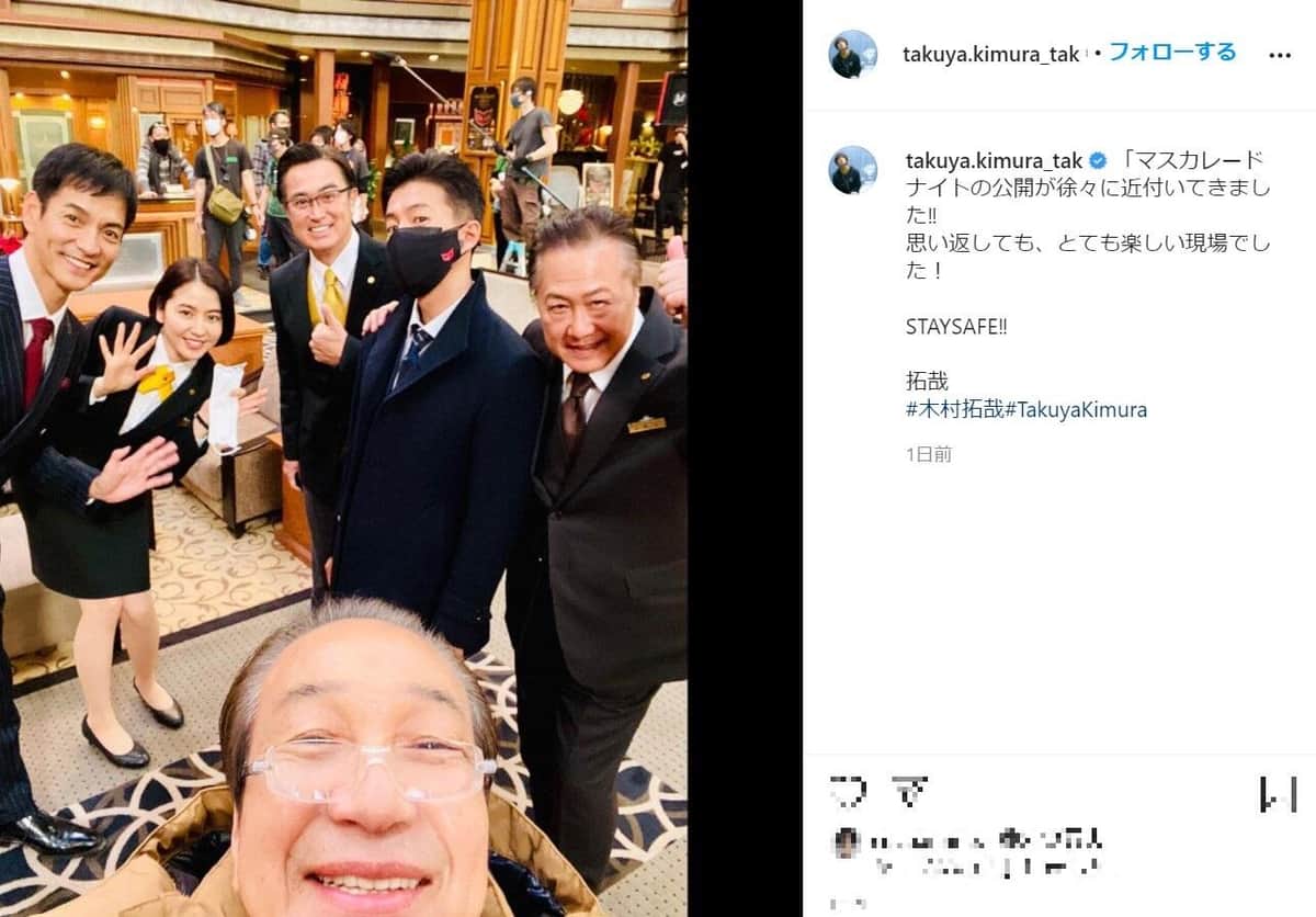 木村さんは投稿で「マスカレードナイトの公開が徐々に近付いてきました!! 」「思い返しても、とても楽しい現場でした!」と書き込んでいる。