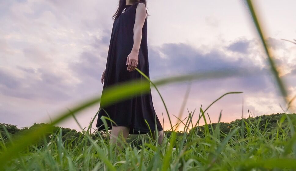 「今日の主役は、ぼかしフラワー柄がロマンチックなワンピースです。繊細なプリーツやウエストのリボンが上品さを高めてくれます。暑さがまだ残るうちは、これ一枚で決まりそうです。」と、笑顔たっぷりで説明していました。