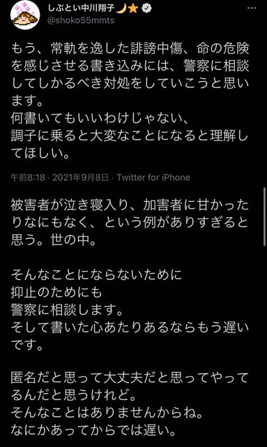 中川翔子さん「誹謗中傷した人たち、警察に相談します。書いた心あたりあるならもう遅いです」 2021/9/11 芸能人の気になる噂 1: 以下、5ちゃんねるからVIPがお送りします 2021/09/08(水) 21:12:04.501 ID:2vtsOK2Sd https://livedoor.blogimg.jp/uwasainfo/imgs/9/1/916359a3.jpg 続きを読む Source: 芸能人の気になる噂